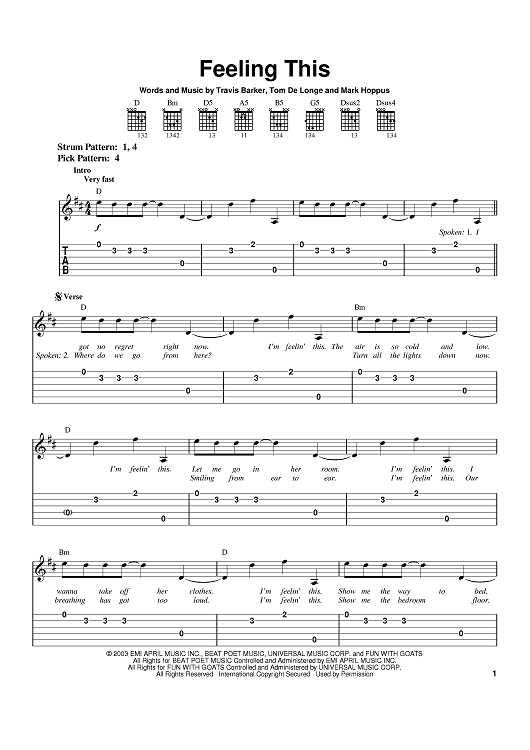 Digital Sheet Music for Feeling This by Travis Barker, Mark Hoppus, blink-182, Tom DeLonge scored for Easy Guitar Tab; id:373589
