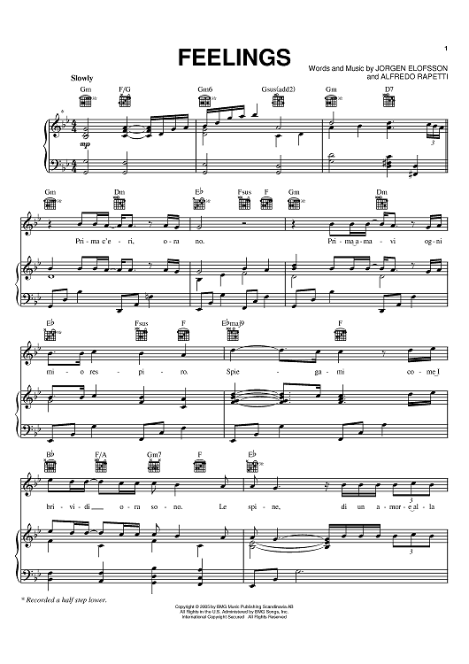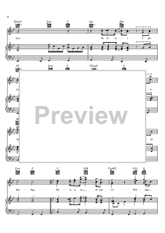 Digital Sheet Music for Feelings by Jörgen Elofsson, Il Divo, Alfredo Rapetti scored for Piano/Vocal/Chords; id:387132