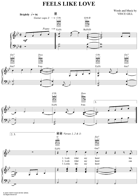 Digital Sheet Music for Feels Like Love by Vince Gill scored for Piano/Vocal/Chords; id:241019