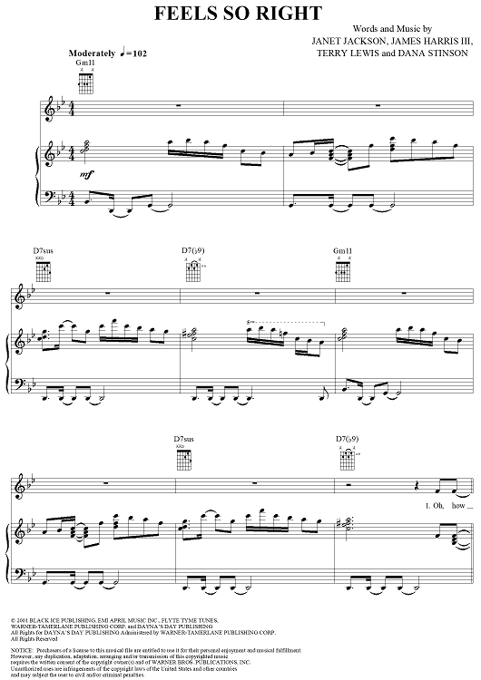 Digital Sheet Music for Feels So Right by Janet Jackson, Jimmy Jam, Terry Lewis, Dana Stinson scored for Piano/Vocal/Chords; id:285730