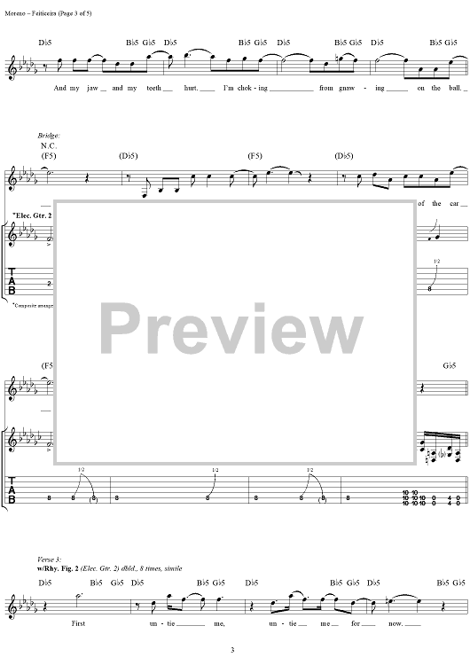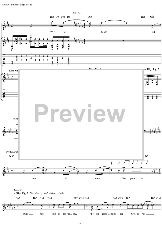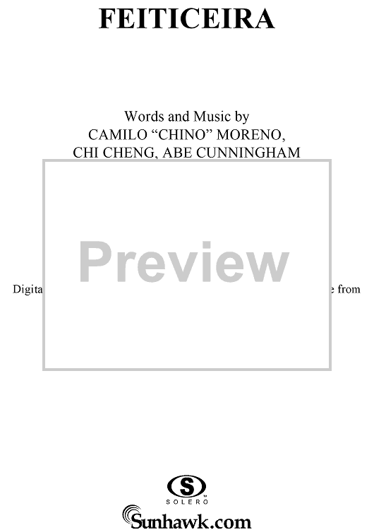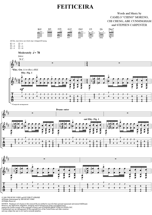 Digital Sheet Music for Feiticeira by Deftones, Chino Moreno, Chi Cheng, Abe Cunningham scored for Guitar Tab/Vocal; id:286528