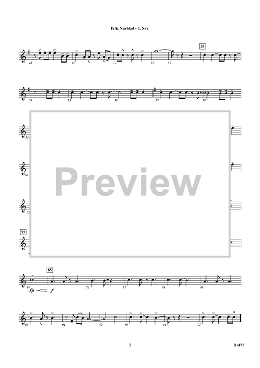 "Feliz Navidad - Bb Tenor Sax" Sheet Music by Jose Feliciano