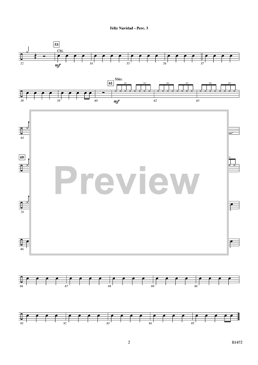 Digital Sheet Music for Feliz Navidad - Percussion 3 by Jose Feliciano, Chris Sharp scored for Concert Band; id:425735