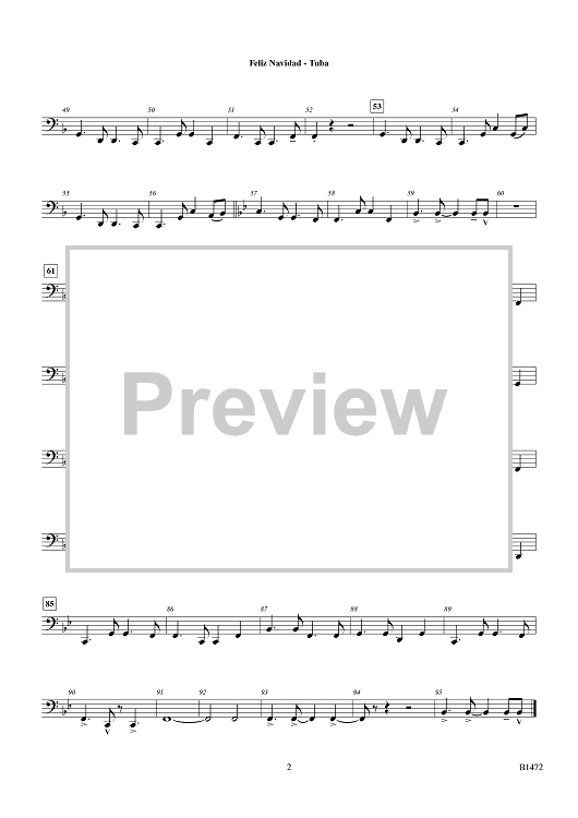 "Feliz Navidad - Tuba" Sheet Music by Jose Feliciano