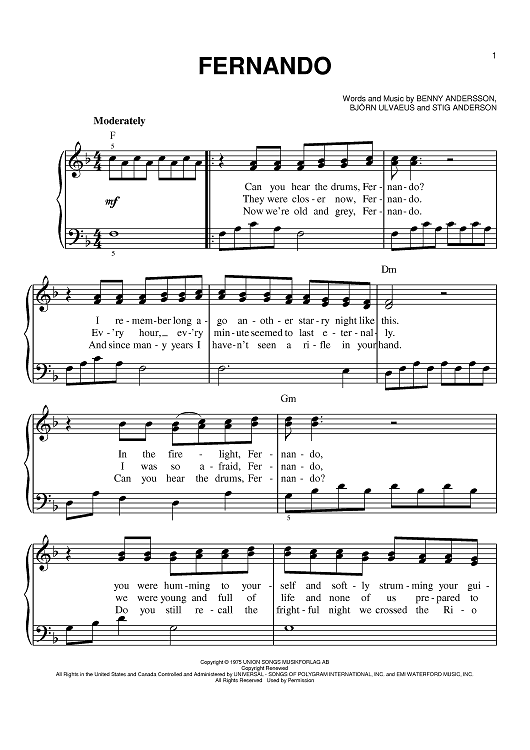 Digital Sheet Music for Fernando by ABBA, Benny Andersson, Bjorn Ulvaeus, Stig Anderson scored for Easy Piano; id:391891