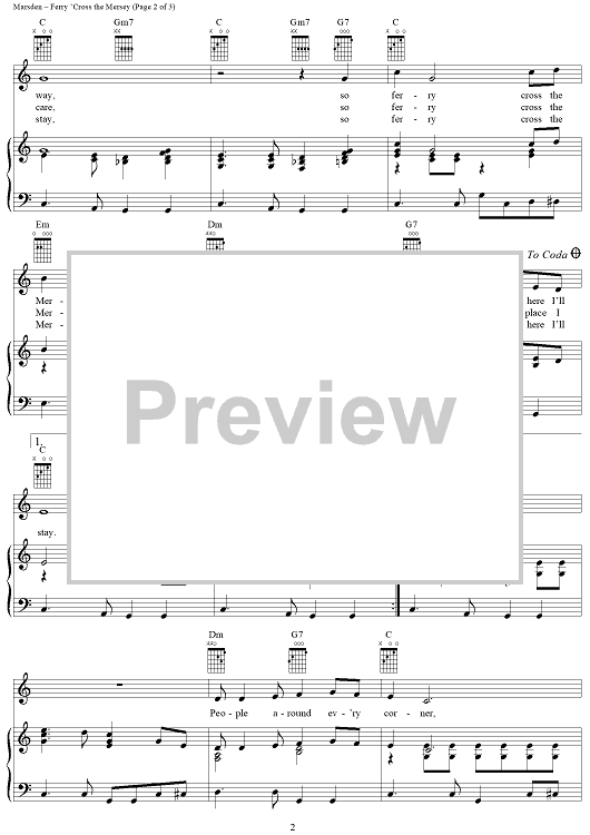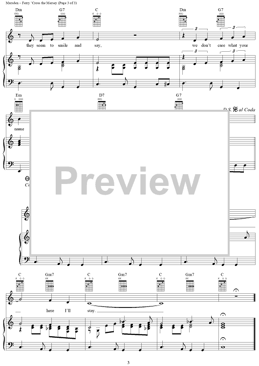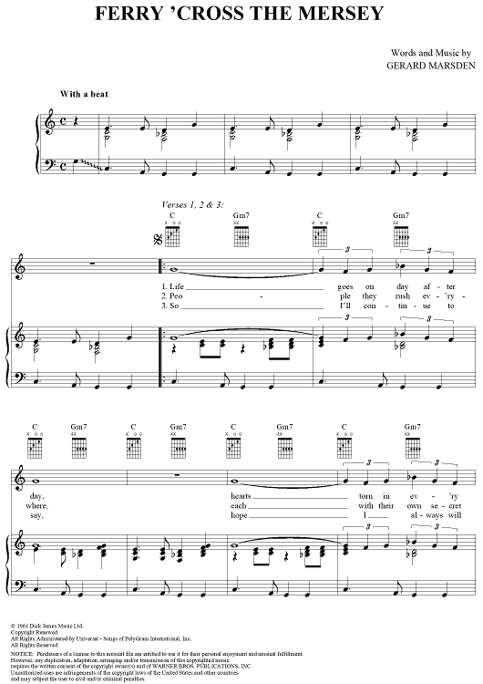 Digital Sheet Music for Ferry 'Cross the Mersey by Gerard Marsden, Gerry and the Pacemakers scored for Piano/Vocal/Chords; id:287064