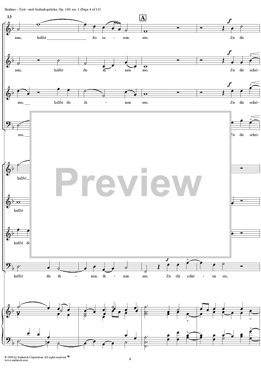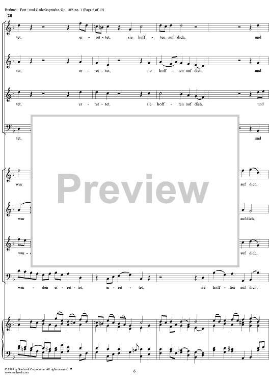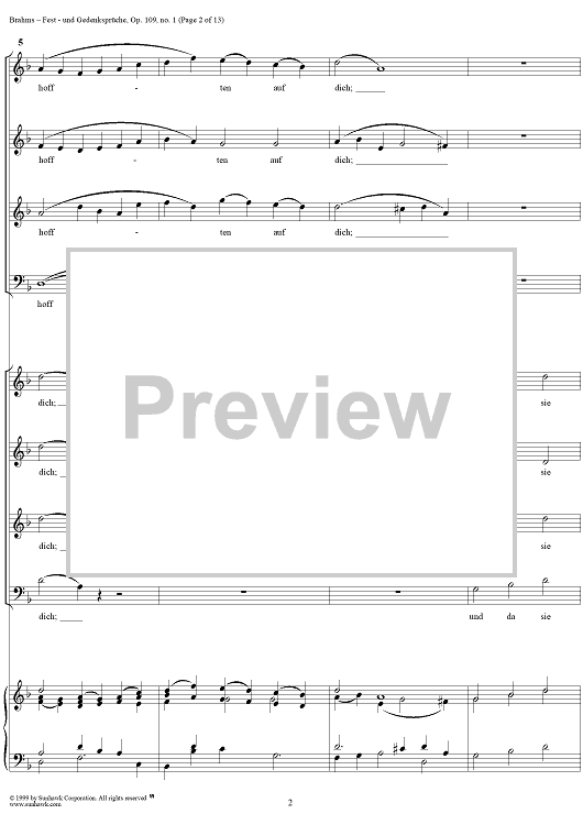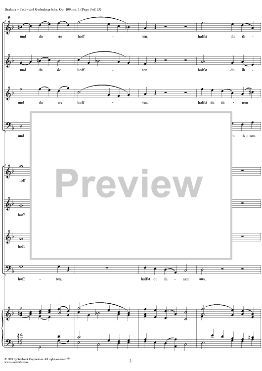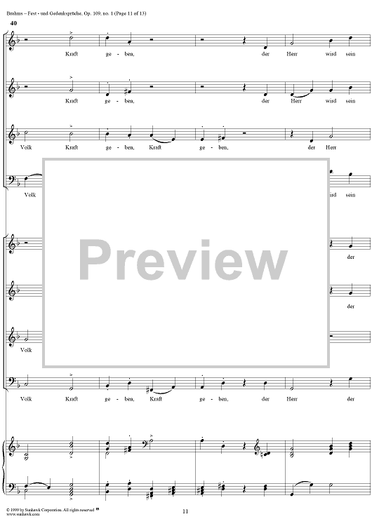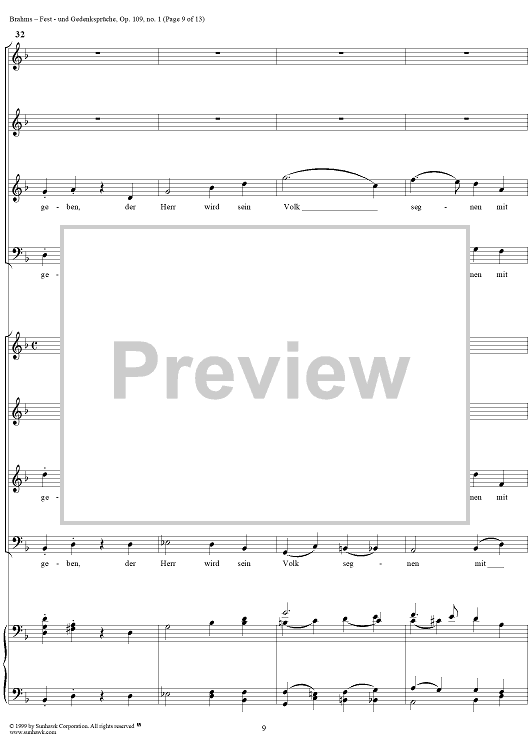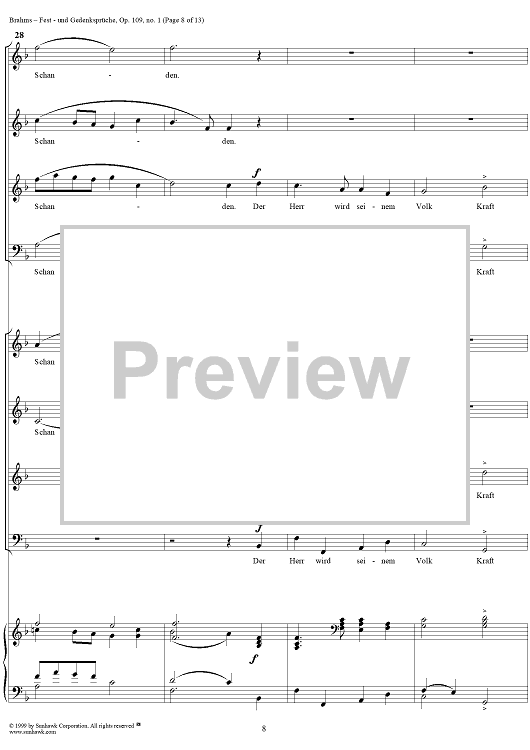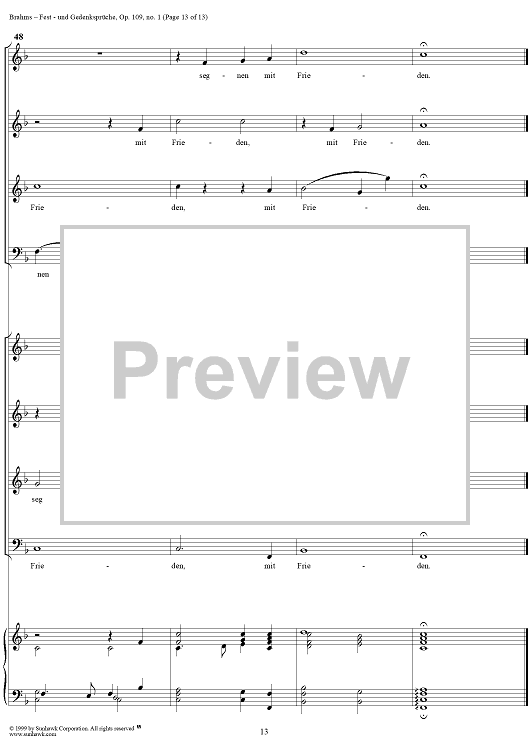 "Fest-und Gedenkspruche, Op. 109, No. 1" Sheet Music by Johannes Brahms