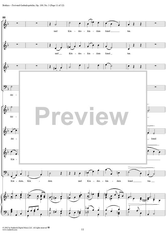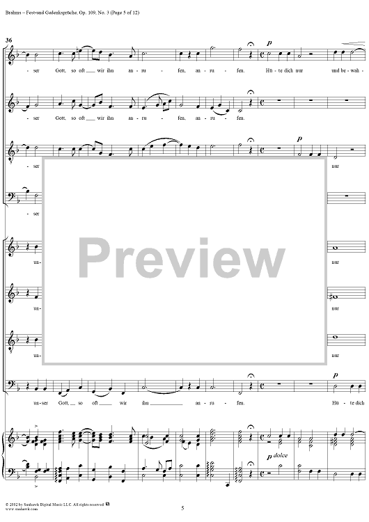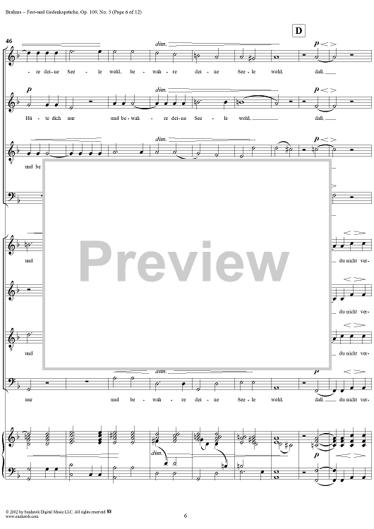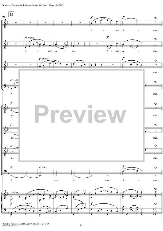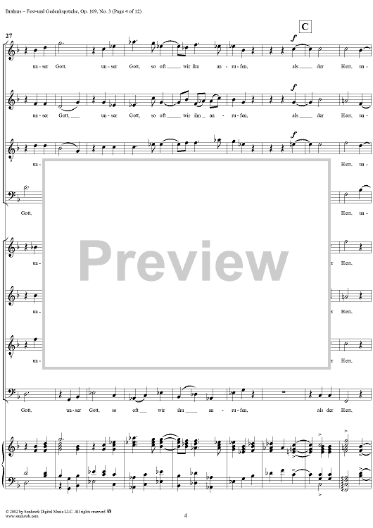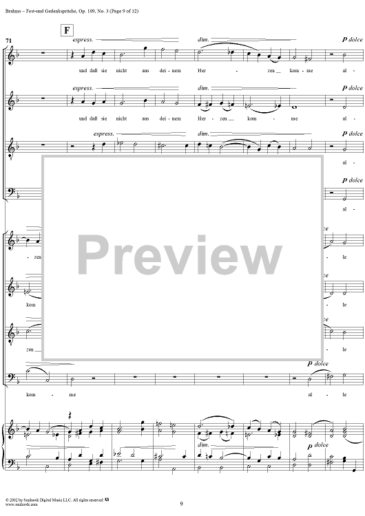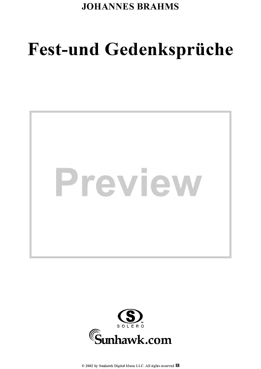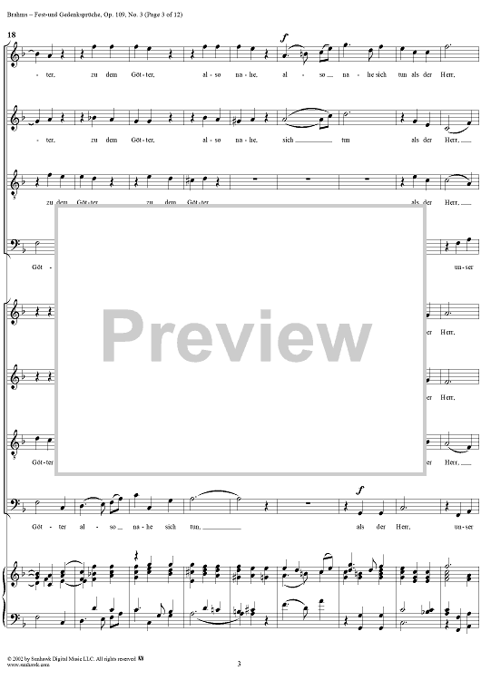 "Fest-und Gedenkspruche, Op. 109, No. 3" Sheet Music by Johannes Brahms