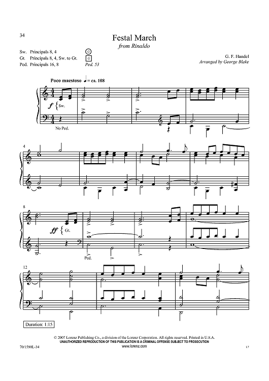 Digital Sheet Music for "Festal March" from Rinaldo by , George Frideric Handel, James Southbridge, George Blake scored for Organ Solo; id:433468
