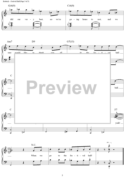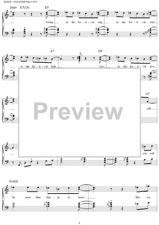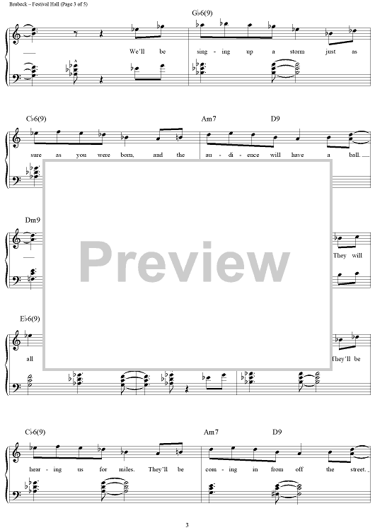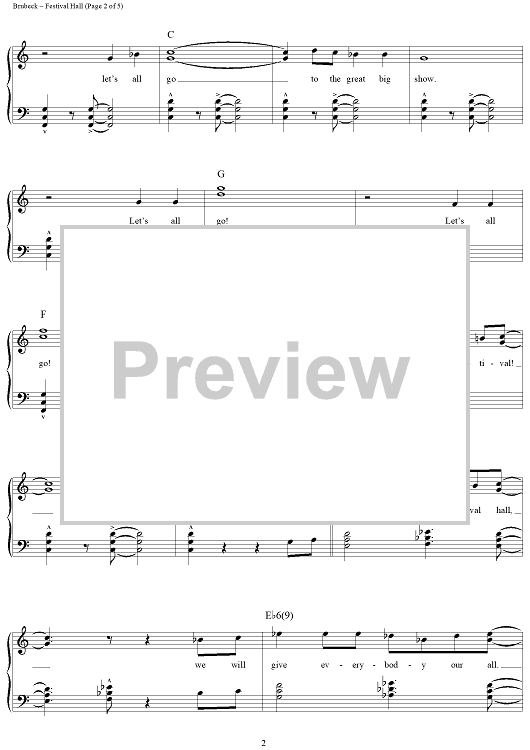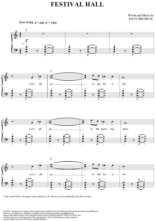 Digital Sheet Music for Festival Hall by Dave Brubeck scored for Piano/Vocal/Chords; id:276019
