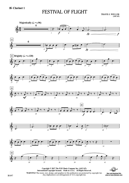 Digital Sheet Music for Festival of Flight - Bb Clarinet 1 by Travis J. Weller scored for Concert Band; id:508613