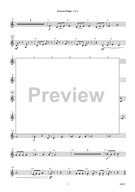 Digital Sheet Music for Festival of Flight - Bb Clarinet 2 by Travis J. Weller scored for Concert Band; id:508614