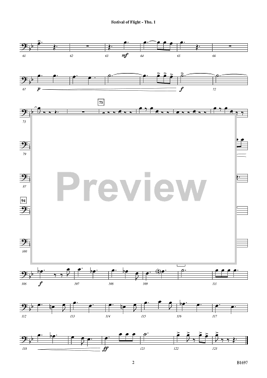 Digital Sheet Music for Festival of Flight - Trombone 1 by Travis J. Weller scored for Concert Band; id:508623