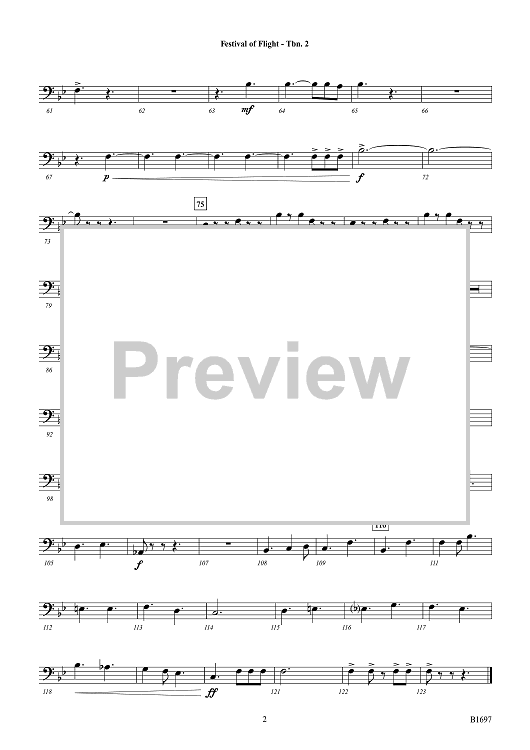 Digital Sheet Music for Festival of Flight - Trombone 2 by Travis J. Weller scored for Concert Band; id:508624