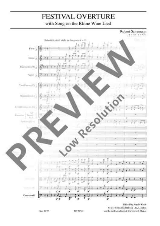 "Festival Overture with Song on the Rhine Wine Lied - Full Score" Sheet Music by Robert Schumann