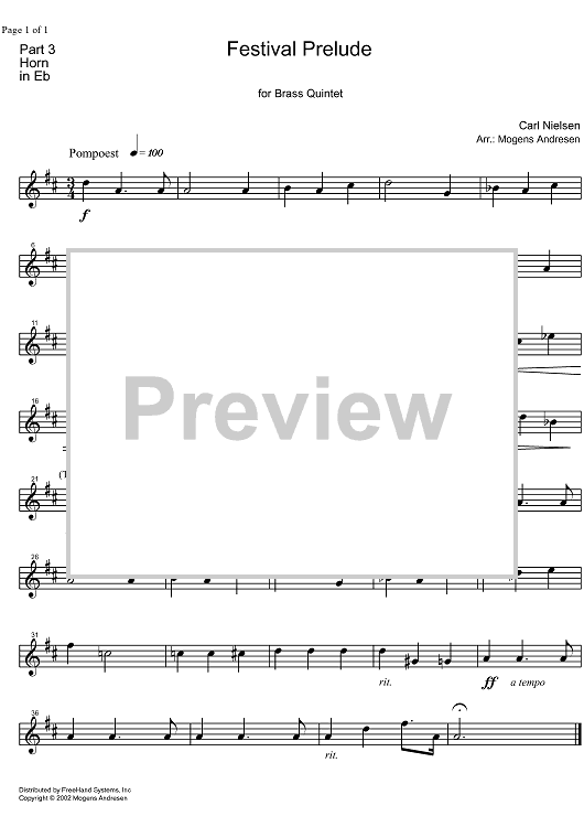 Digital Sheet Music for Festival Prelude - Horn in E-flat by Mogens Andresen, Carl Nielsen scored for Brass Quintet; id:332019