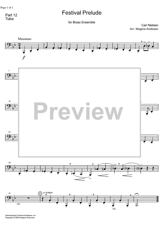 Digital Sheet Music for Festival Prelude - Tuba by Mogens Andresen, Carl Nielsen scored for Brass Ensemble; id:332044