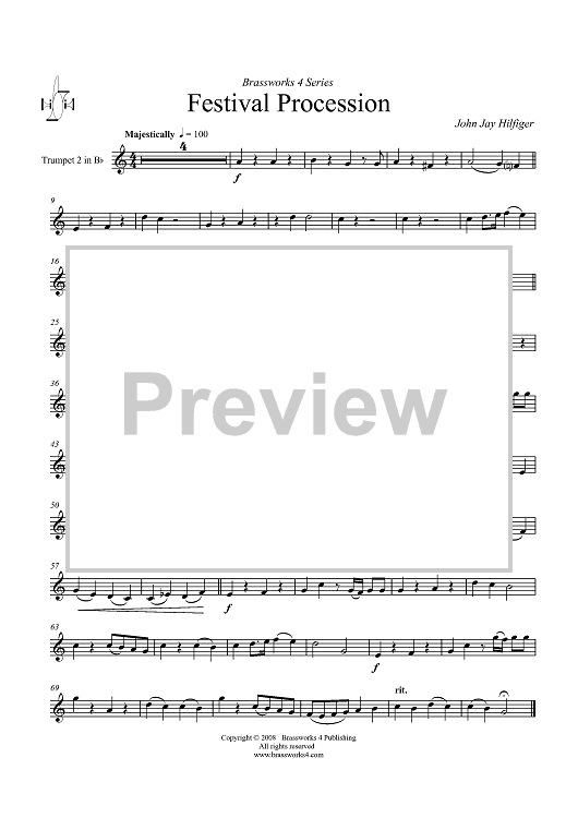 Digital Sheet Music for Festival Procession - Trumpet 2 in B-flat by John Jay Hilfiger scored for Brass Quartet; id:410465