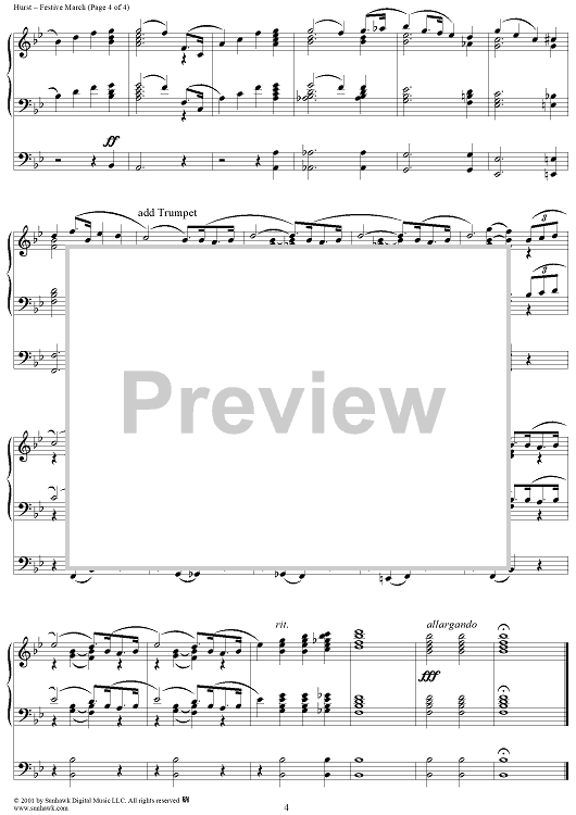 Digital Sheet Music for Festive March by J. Hurst scored for Organ Solo; id:254675