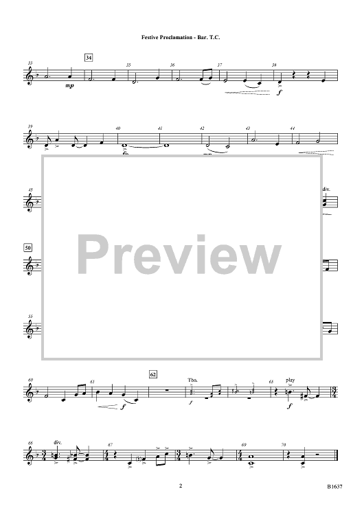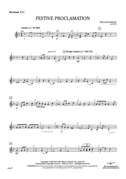 Digital Sheet Music for Festive Proclamation - Baritone TC by William Owens scored for Concert Band; id:455065