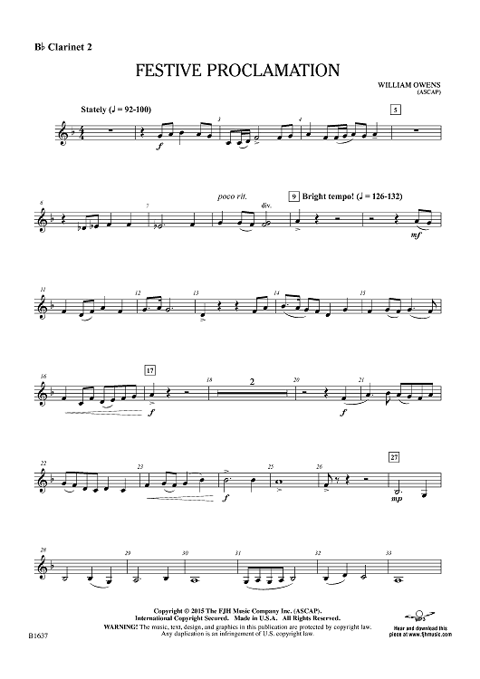 "Festive Proclamation - Bb Clarinet 2" Sheet Music by William Owens