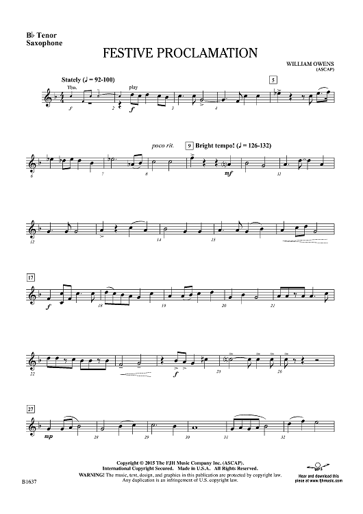 "Festive Proclamation - Bb Tenor Sax" Sheet Music by William Owens