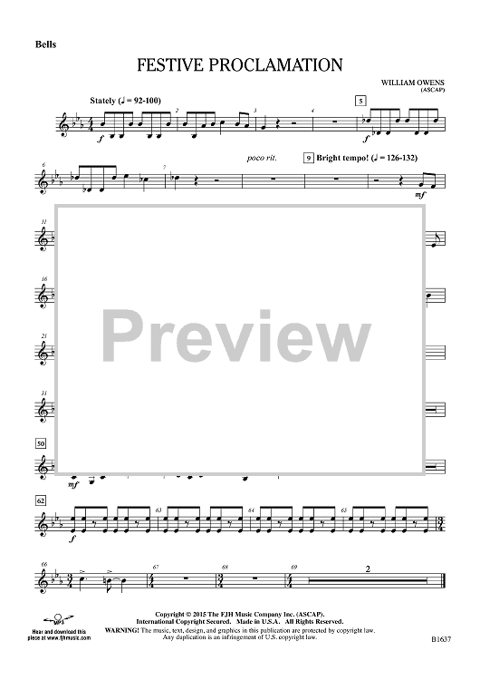 Digital Sheet Music for Festive Proclamation - Bells by William Owens scored for Concert Band; id:455068