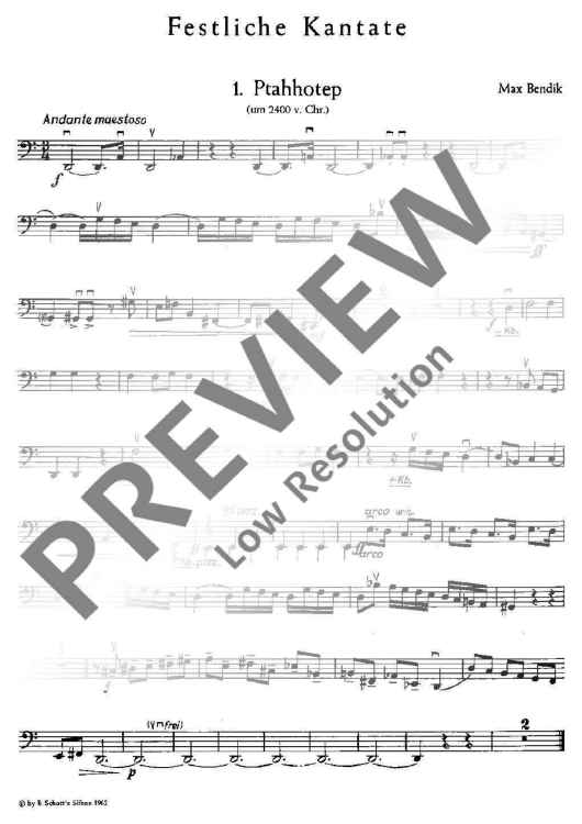 Digital Sheet Music for Festliche Kantate - Cello / Double Bass by Max Bendik scored for Mixed Choir (satb) And Small Orchestra; id:487950