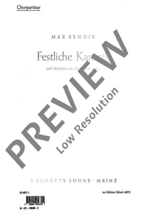 Digital Sheet Music for Festliche Kantate - Choral Score by Max Bendik scored for Mixed Choir (satb) And Small Orchestra; id:488105
