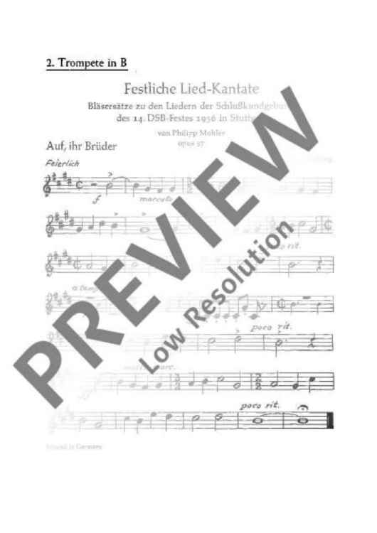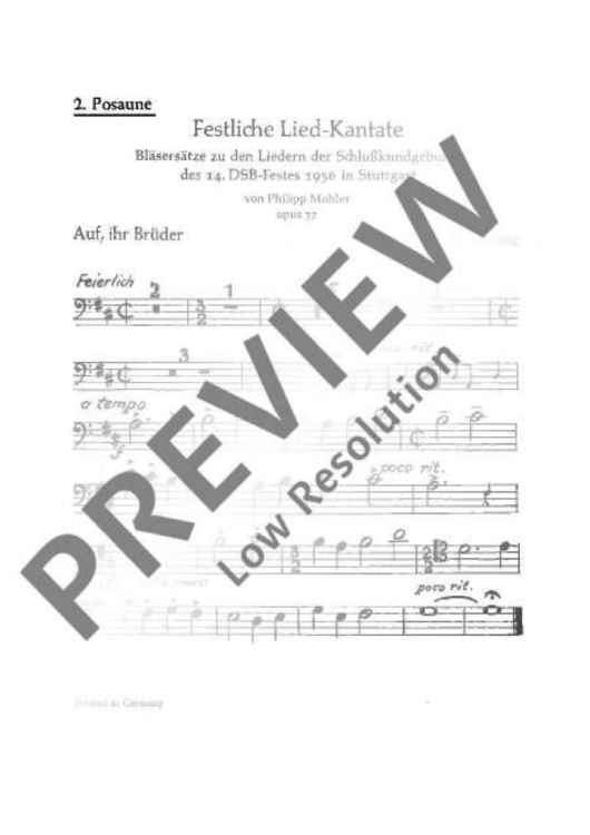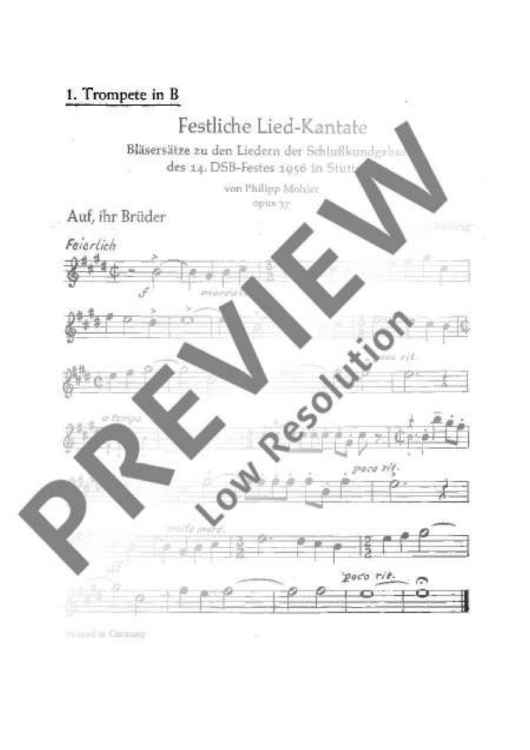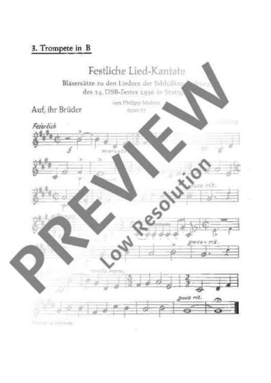 Digital Sheet Music for Festliche Liedkantate - Set of Parts by scored for Men's Choir (ttbb) A Cappella Or With Piano Or Brass (3.3.3.1 - Pk); id:478791