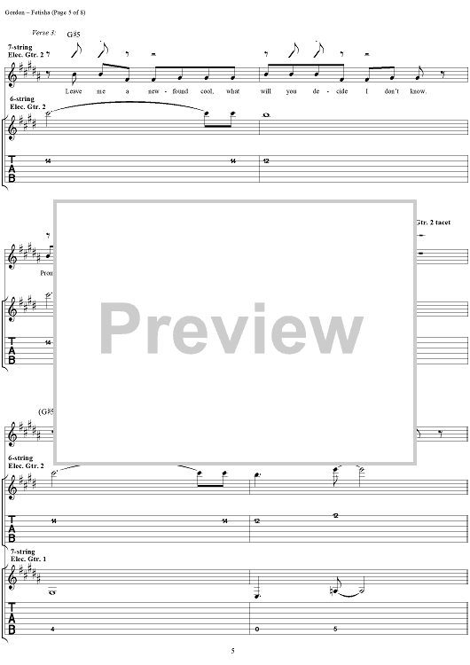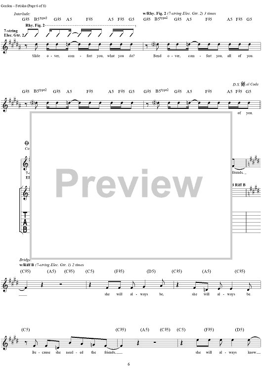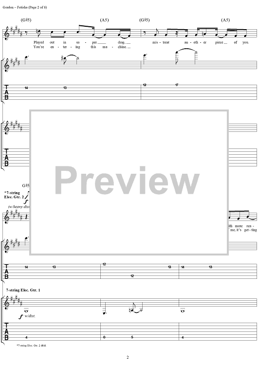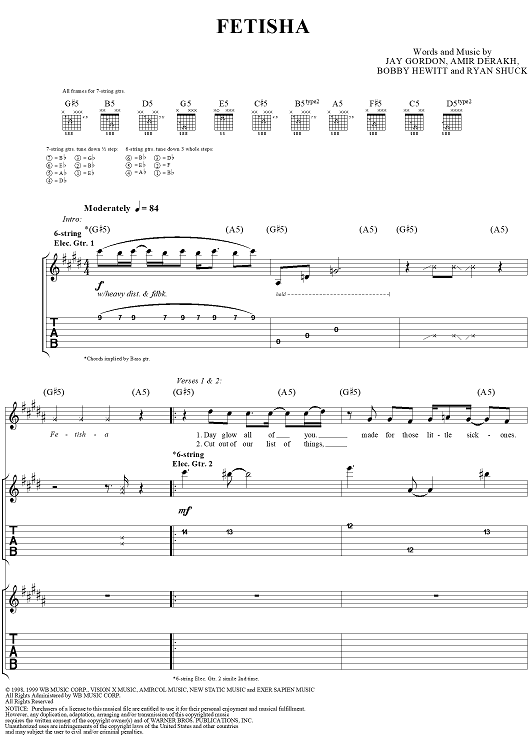 Digital Sheet Music for Fetisha by Orgy, Jay Gordon, Amir Derakh, Bobby Hewitt, Ryan Shuck scored for Guitar Tab/Vocal; id:186237
