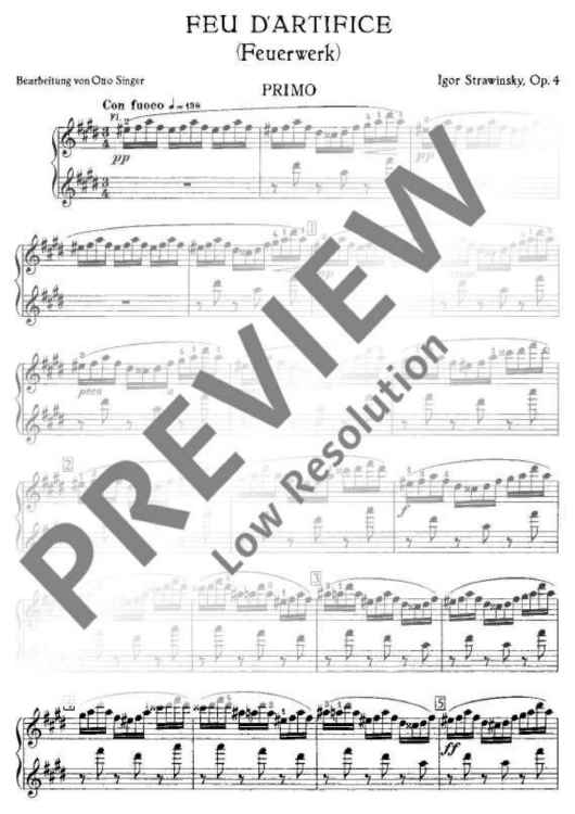 Digital Sheet Music for Feu d'artifice - Fireworks by Igor Stravinsky, Otto Singer scored for Piano (4 Hands); id:472338