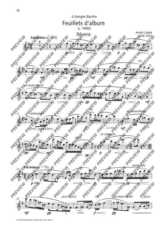 Digital Sheet Music for Feuillets d’album by Andre Caplet scored for Flute And Piano; id:497284