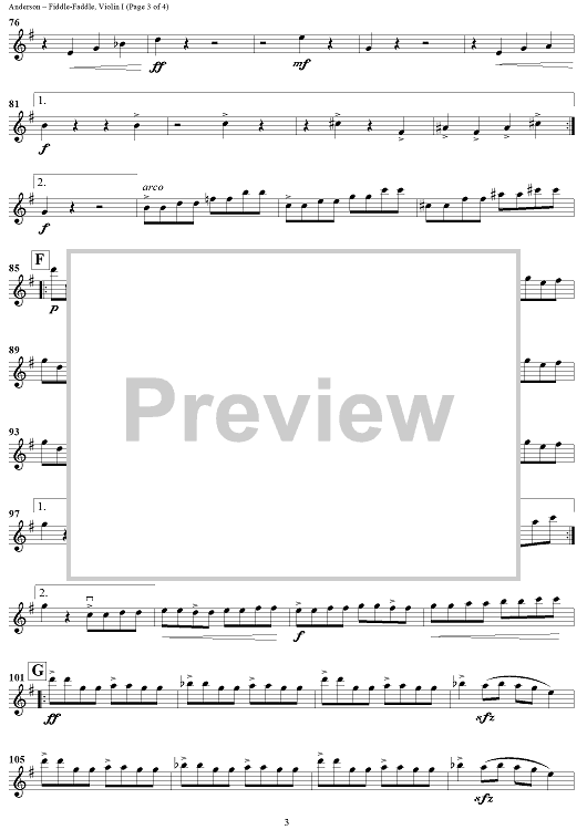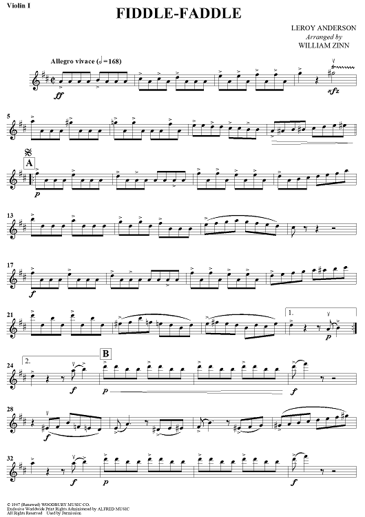 "Fiddle-Faddle - Violin 1" Sheet Music by Leroy Anderson