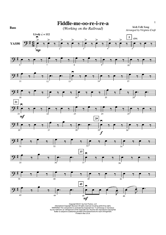 "Fiddle-me-oo-re-i-re-a - Bass" Sheet Music by Irish Folk Song