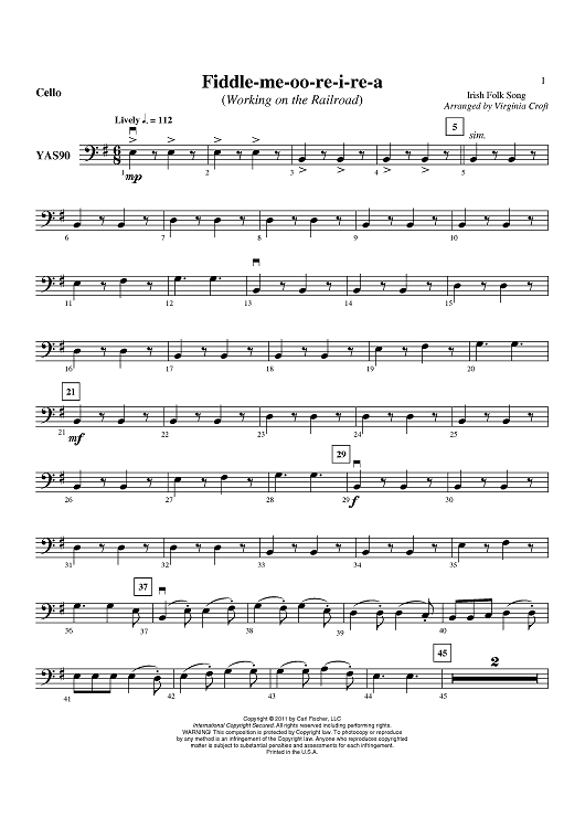 Digital Sheet Music for Fiddle-me-oo-re-i-re-a - Cello by Virginia Croft, Irish Folk Song scored for Orchestra; id:419043