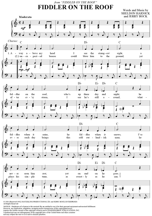 Digital Sheet Music for Fiddler on the Roof by Jerry Bock, Sheldon Harnick scored for Piano/Vocal/Chords; id:307908