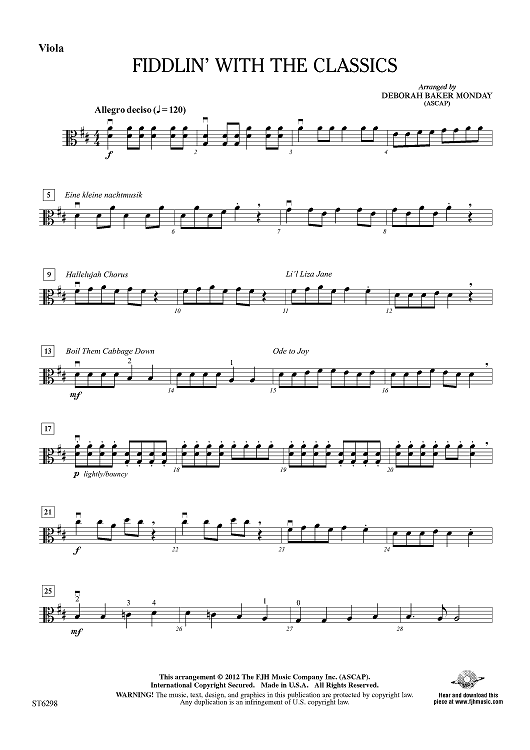 "Fiddlin' With the Classics - Viola" Sheet Music by Deborah Baker Monday