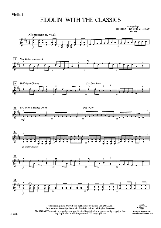 "Fiddlin' With the Classics - Violin 1" Sheet Music by Deborah Baker Monday