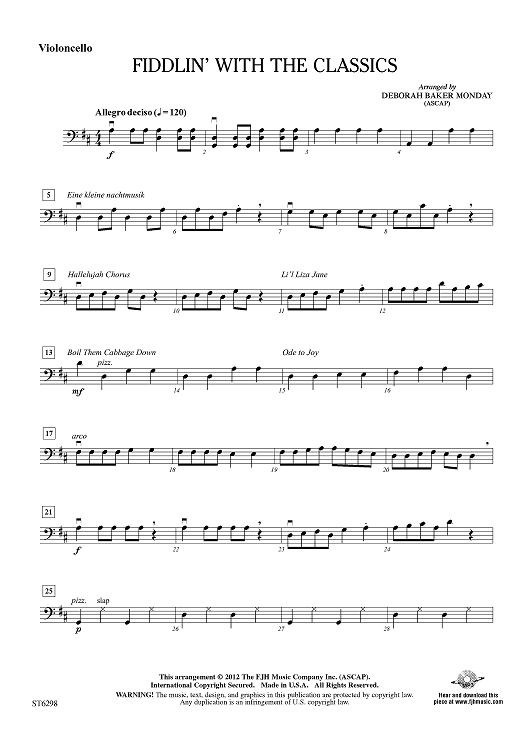"Fiddlin' With the Classics - Violoncello" Sheet Music by Deborah Baker Monday