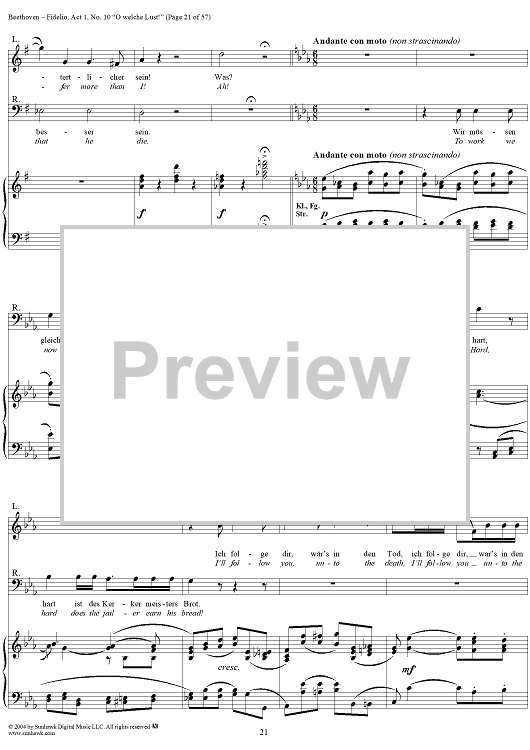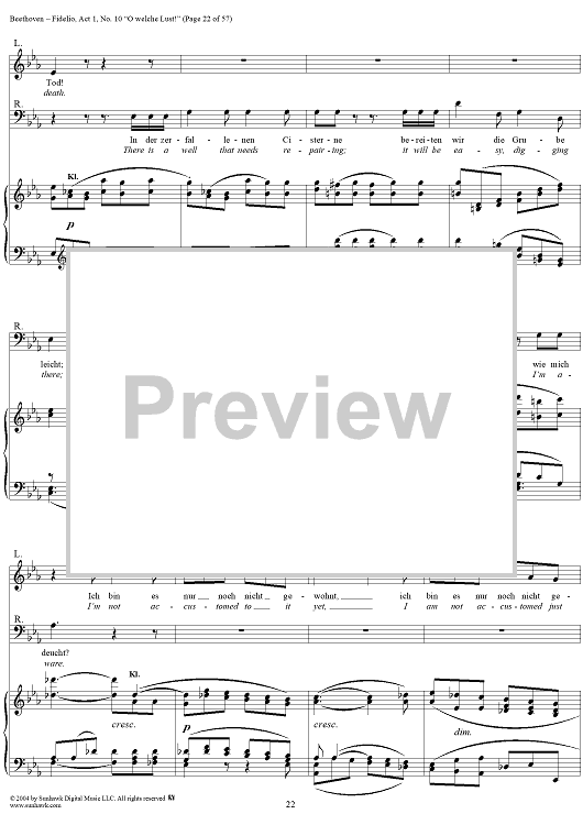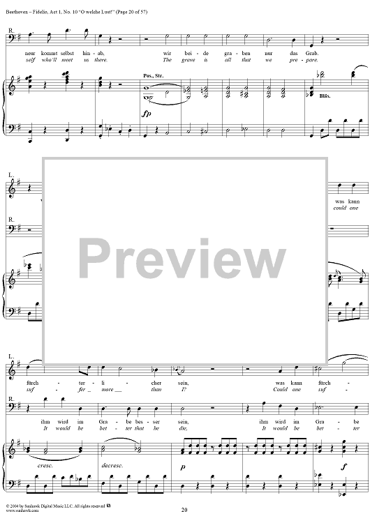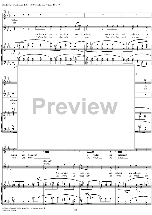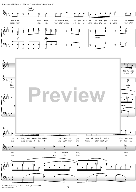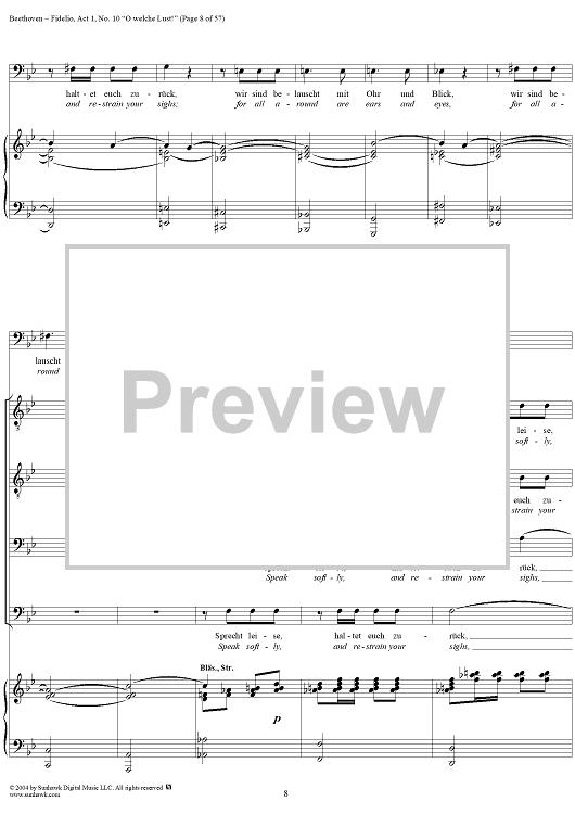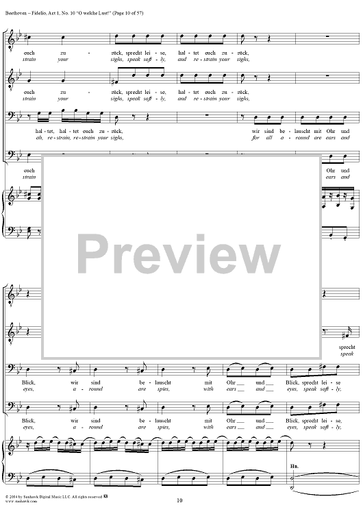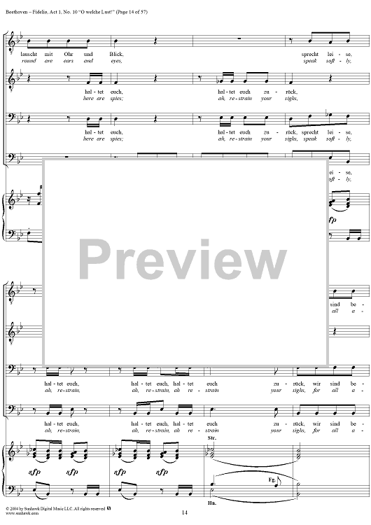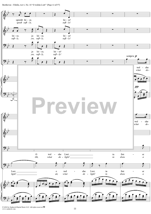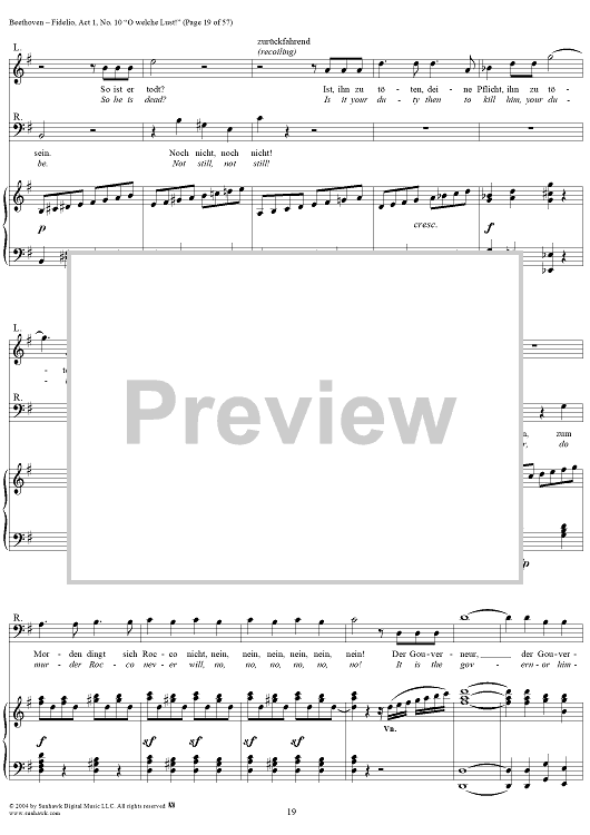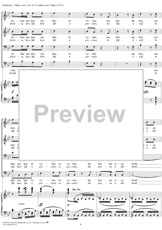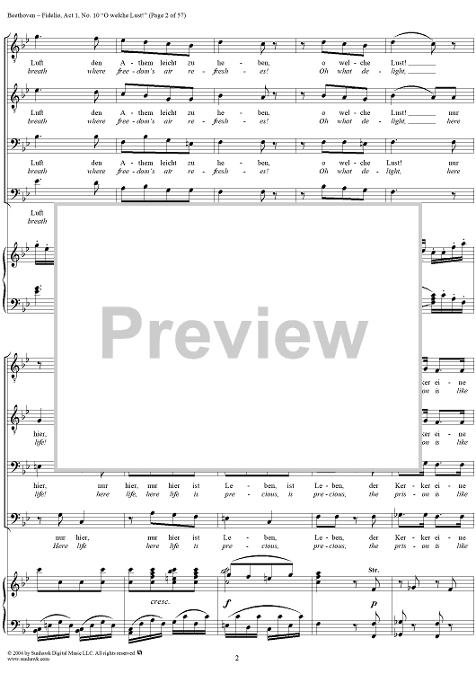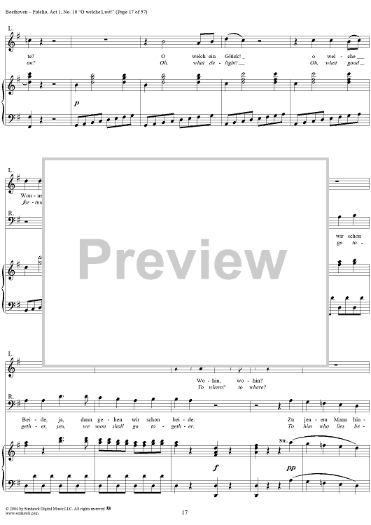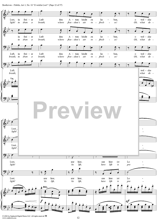 Digital Sheet Music for Fidelio, Op. 72, No. 10: "O welche Lust!" by Ludwig van Beethoven scored for Voice/Piano; id:304940