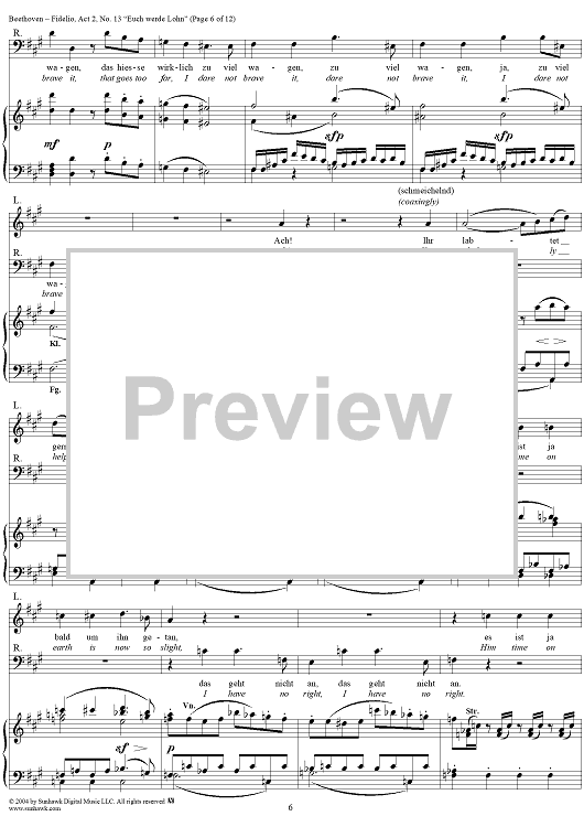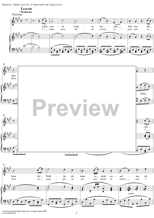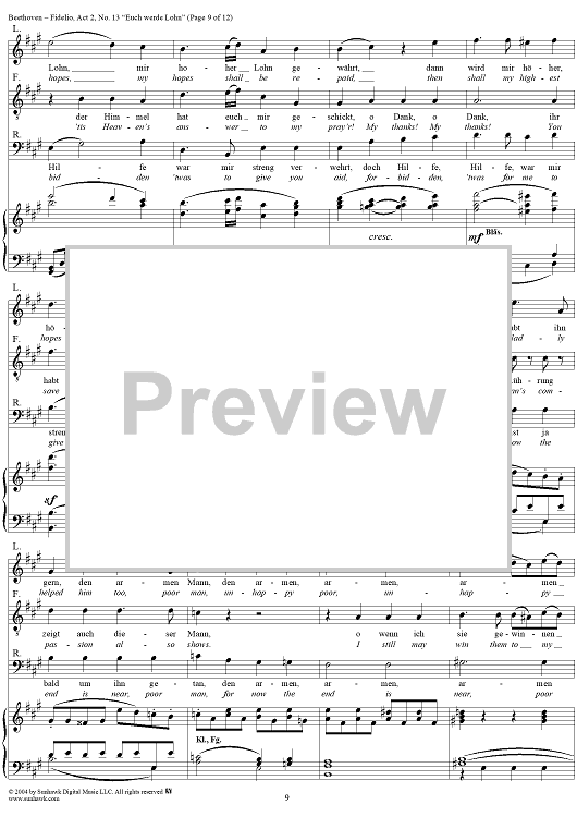 Digital Sheet Music for Fidelio, Op. 72, No. 13: "Euch werde Lohn" by Ludwig van Beethoven scored for Voice/Piano; id:304943
