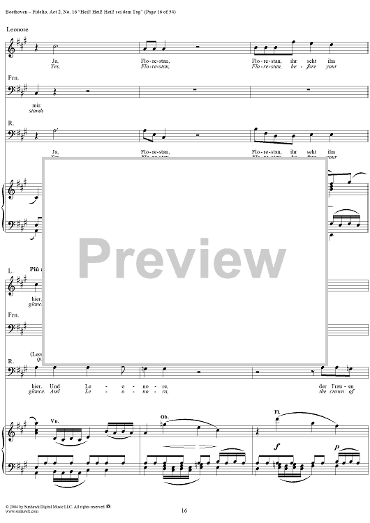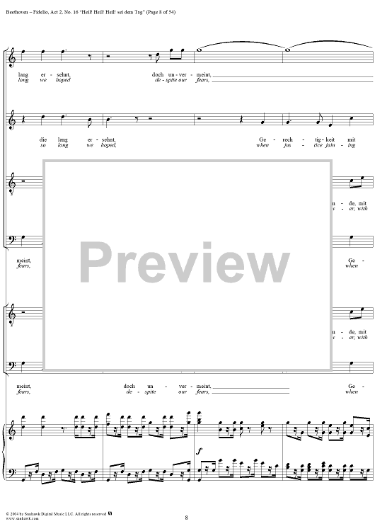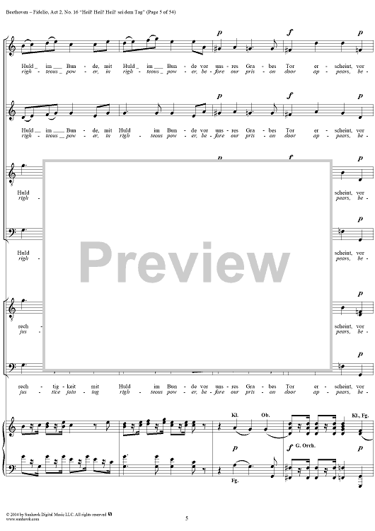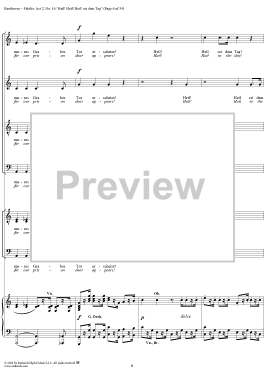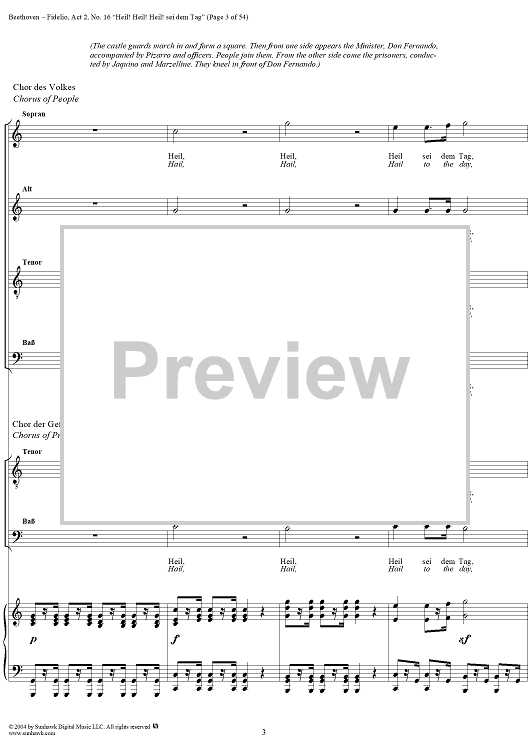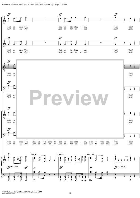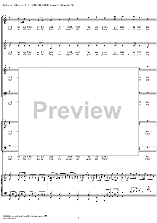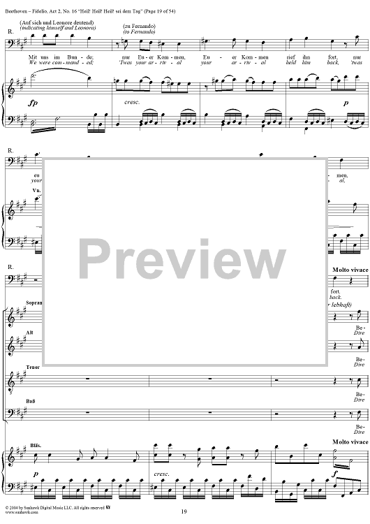 Digital Sheet Music for Fidelio, Op. 72, No. 16: "Heil! Heil! Heil sei dem Tag" by Ludwig van Beethoven scored for Voice/Piano; id:304946