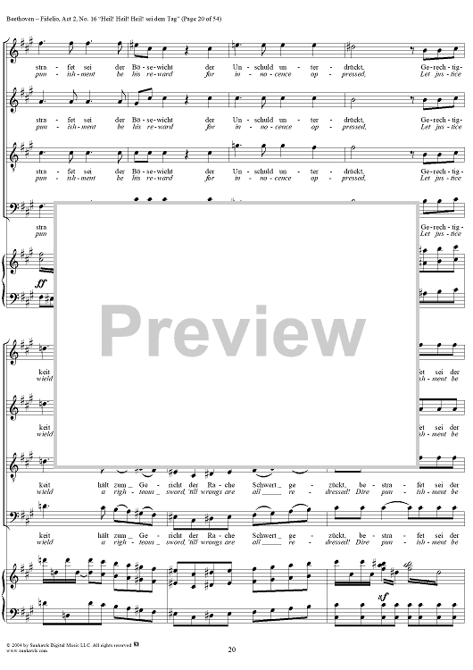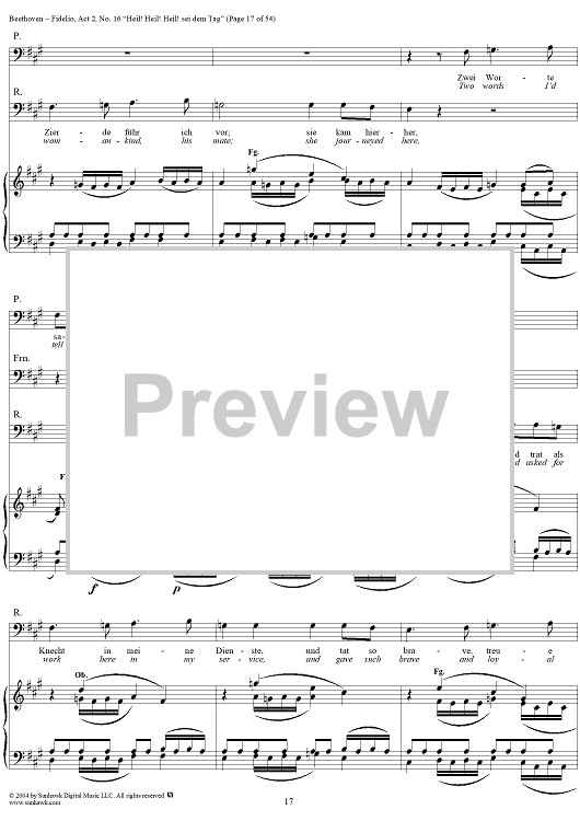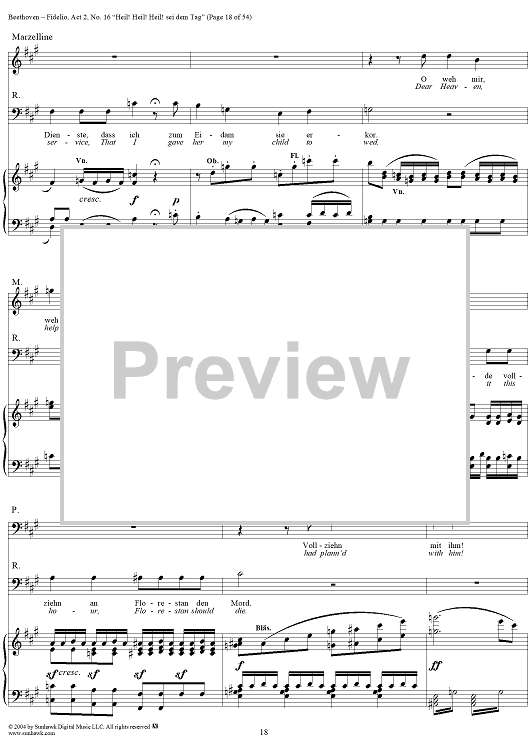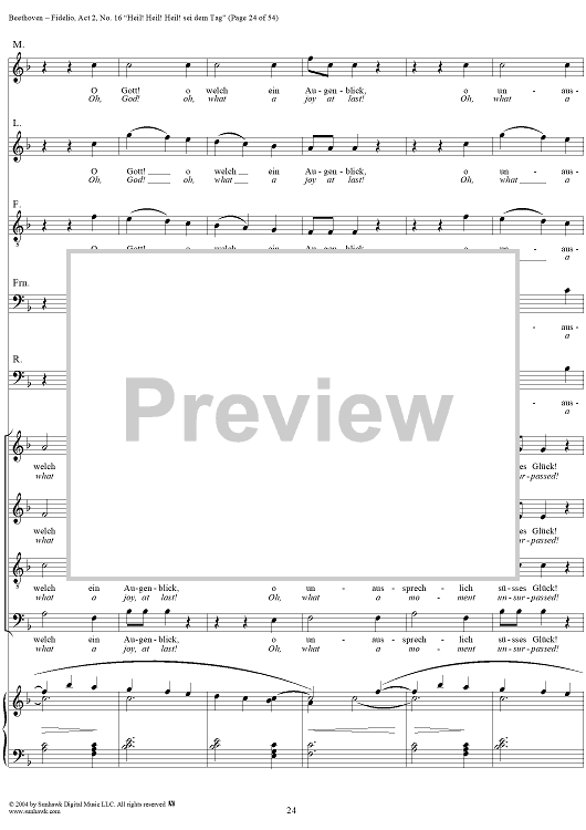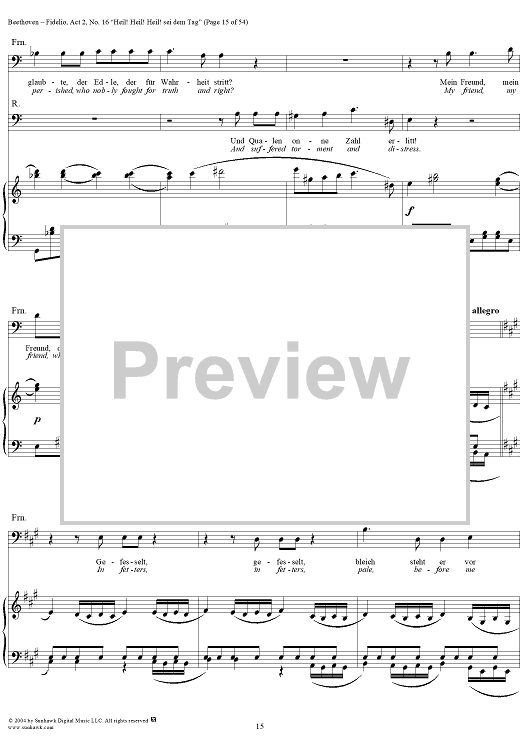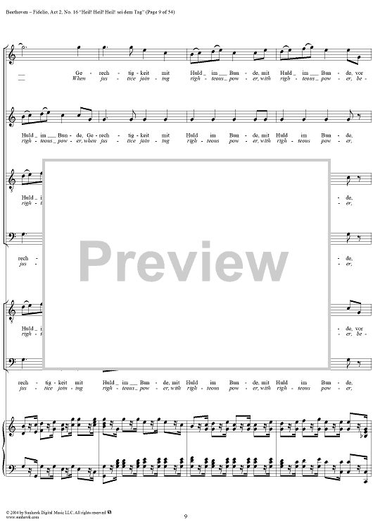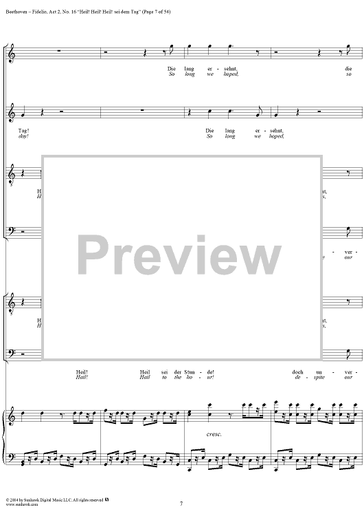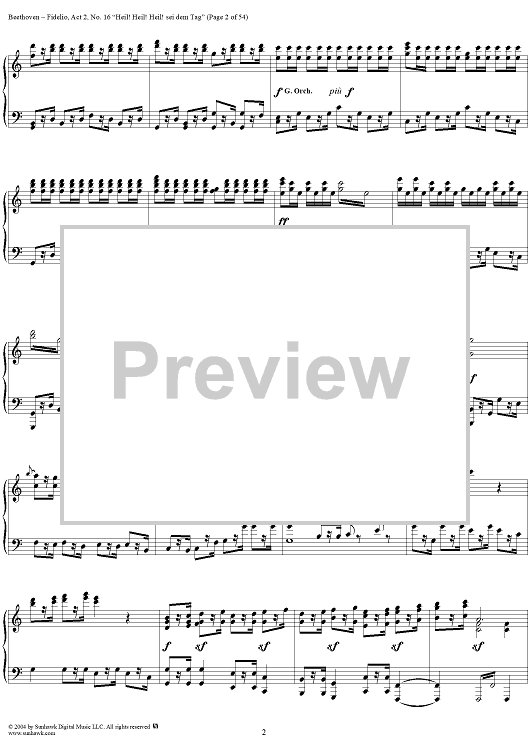 Digital Sheet Music for Fidelio, Op. 72, No. 16: "Heil! Heil! Heil sei dem Tag" by Ludwig van Beethoven scored for Voice/Piano; id:304946
