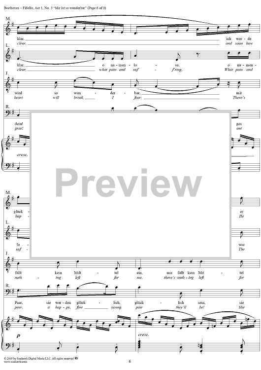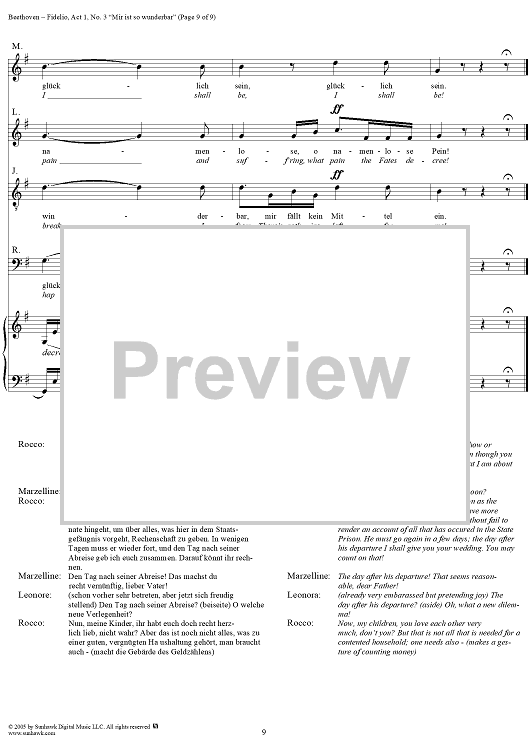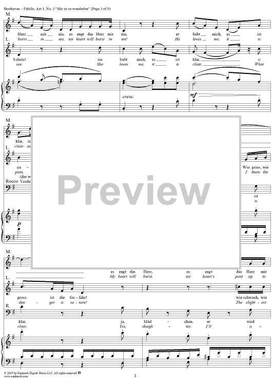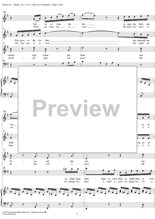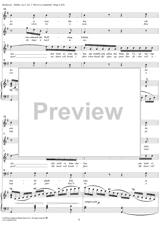 Digital Sheet Music for Fidelio, Op. 72, No. 3: "Mir ist so wunderbar" by Ludwig van Beethoven scored for Voice/Piano; id:304910