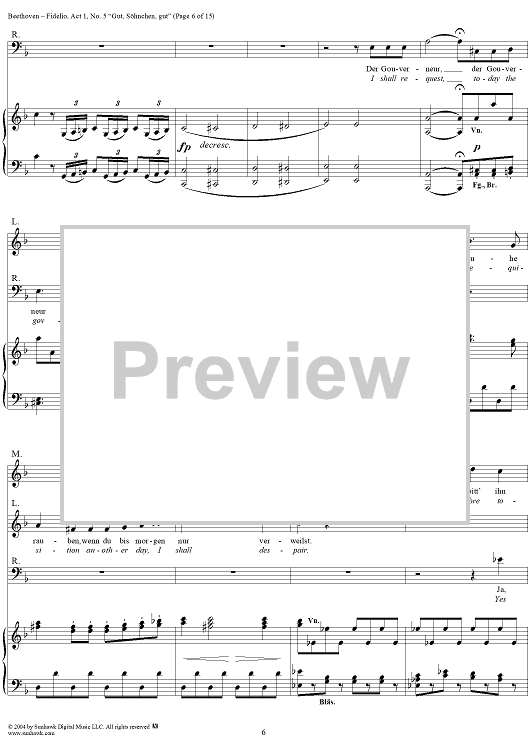 Digital Sheet Music for Fidelio, Op. 72, No. 5: "Gut, Söhnchen, gut" by Ludwig van Beethoven scored for Voice/Piano; id:304912