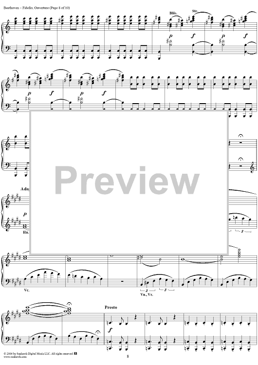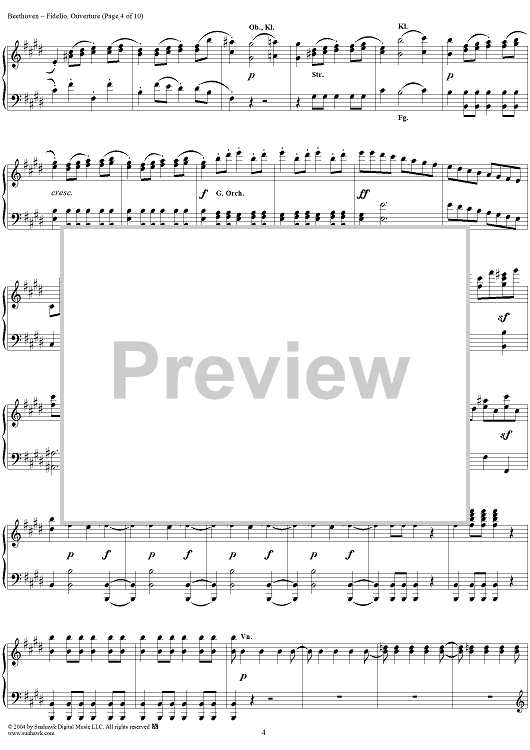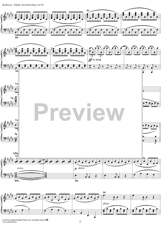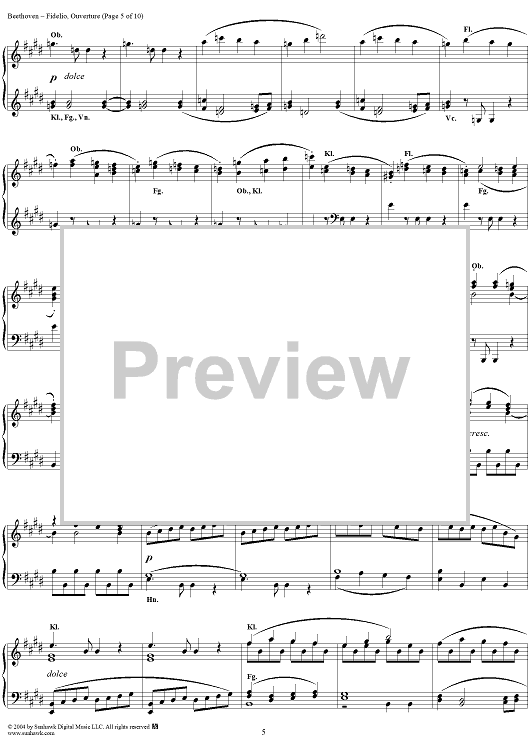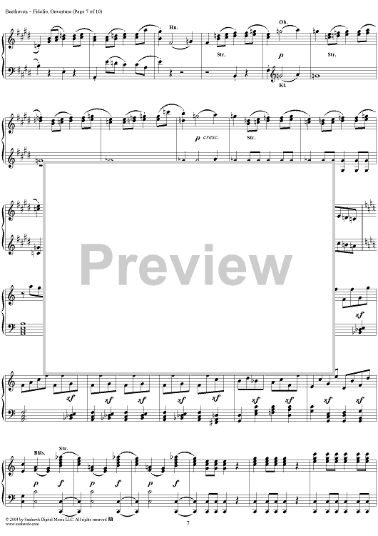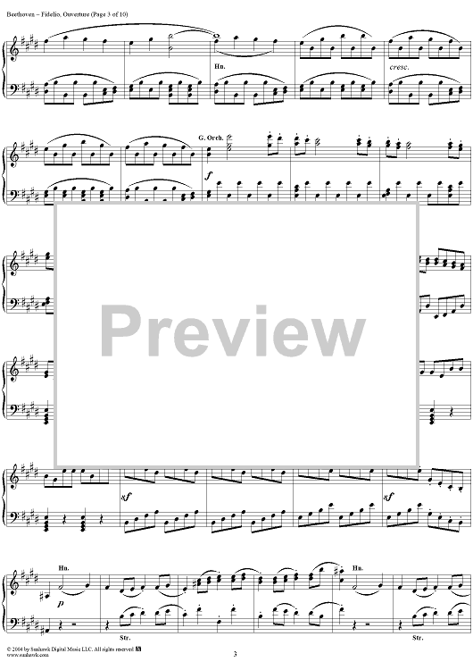 Digital Sheet Music for Fidelio, Op. 72, Ouvertüre by Ludwig van Beethoven scored for Piano Solo; id:304907
