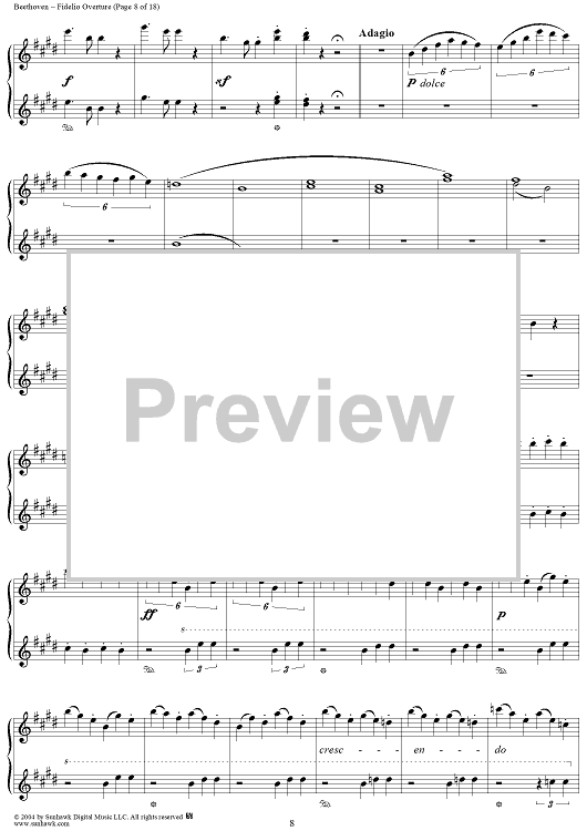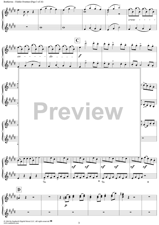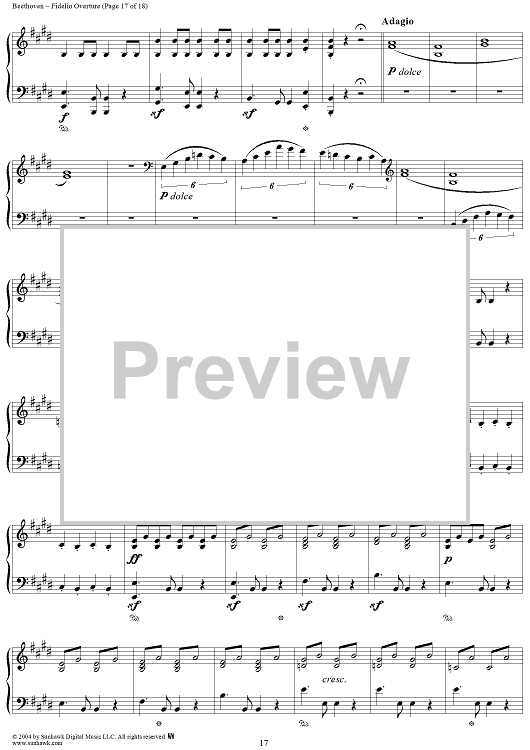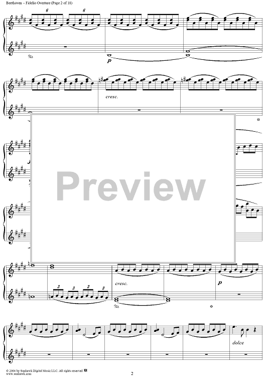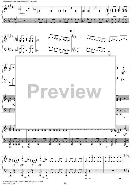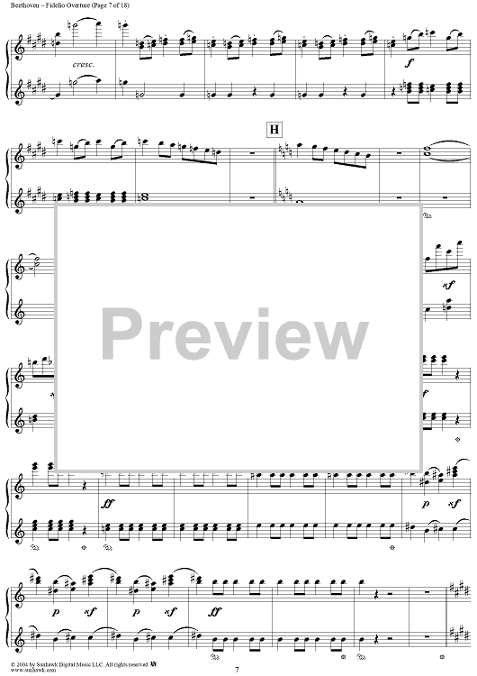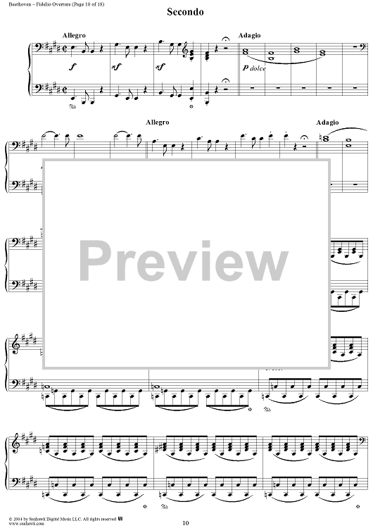 Digital Sheet Music for Fidelio Overture by Ludwig van Beethoven scored for 1 Piano, 4 Hands; id:296365