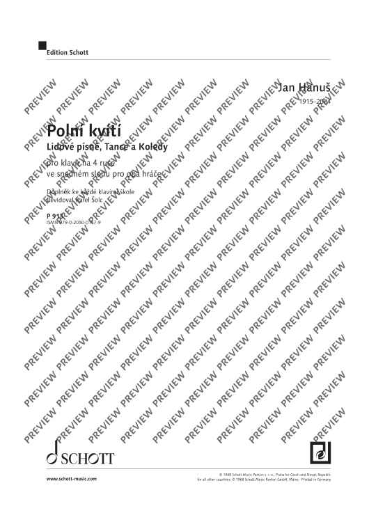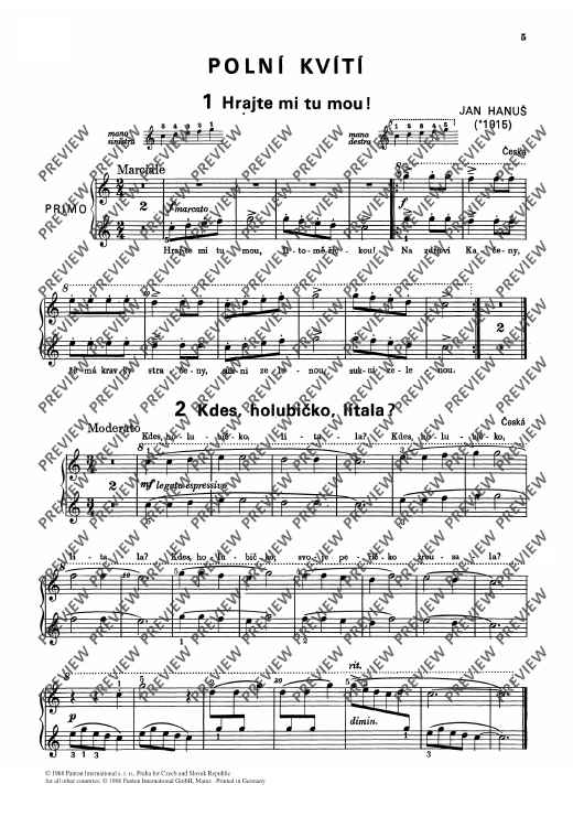 Digital Sheet Music for Field Flowers by Jan Hanuš scored for Piano (4 Hands); id:496585