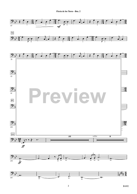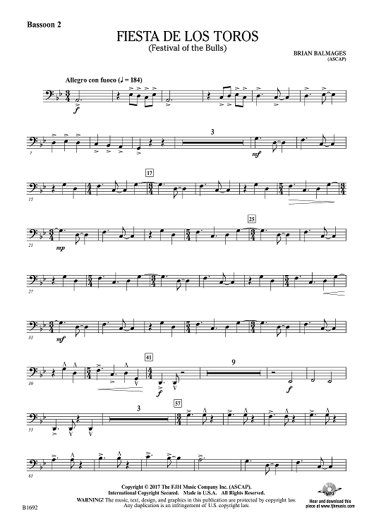 Digital Sheet Music for Fiesta de los Toros - Bassoon 2 by Brian Balmages scored for Concert Band; id:510297